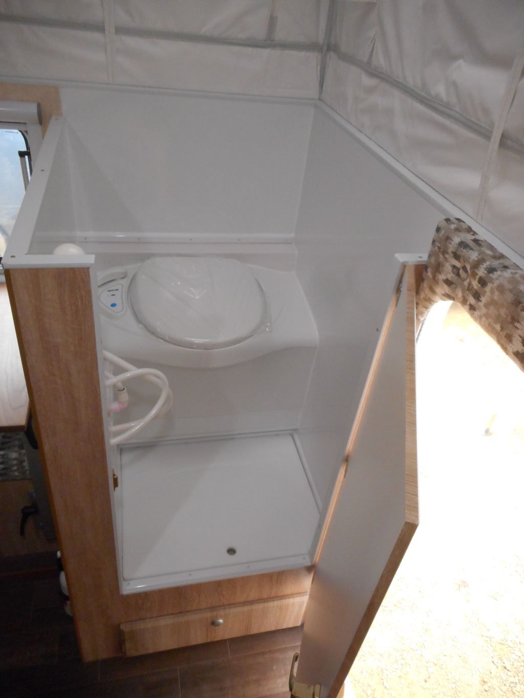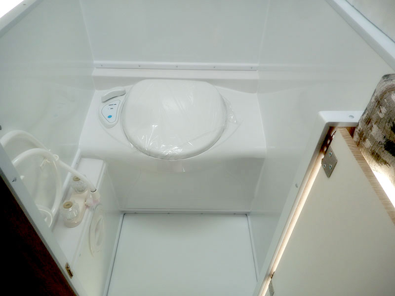 The 650SC (SC meaning Self Contained, Interior Toilet & Shower) is 7’ in the floor length and will fit full-size 5′ 6″ to 5’ 10” Ultra Short Bed trucks and 6′ 4″ to 6′ 10″ Standard Short Bed trucks. This model will not impede the receiver on any of the 6′ 4″ to 6′ 10″ bed length trucks, therefore allowing for easy hitch access for those wishing to tow behind their truck and camper.