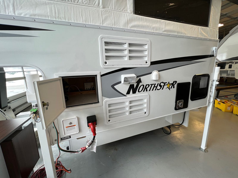 Comfort on the Outside, Too. Insulated windows with screens and shades provide climate control while keeping bugs out. The extended cabover with side cabinets ensures ample storage, while the sleek fiberglass siding and LED lighting offer a modern look that complements its rugged capabilities.