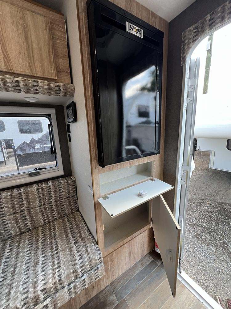 Personalize your Liberty camper with a wide range of accessories. Available upgrades include roof air conditioning, a 24″ digital TV, a 3000-watt inverter, and a 2nd 200-watt solar panel.