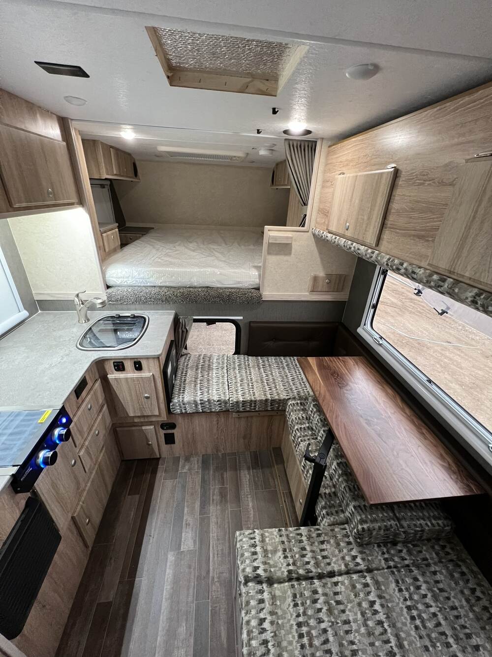 The camper can be ordered with different wraps to accommodate Std. Short Bed (6’4” to 6’10”) or Long Bed (8’) trucks.