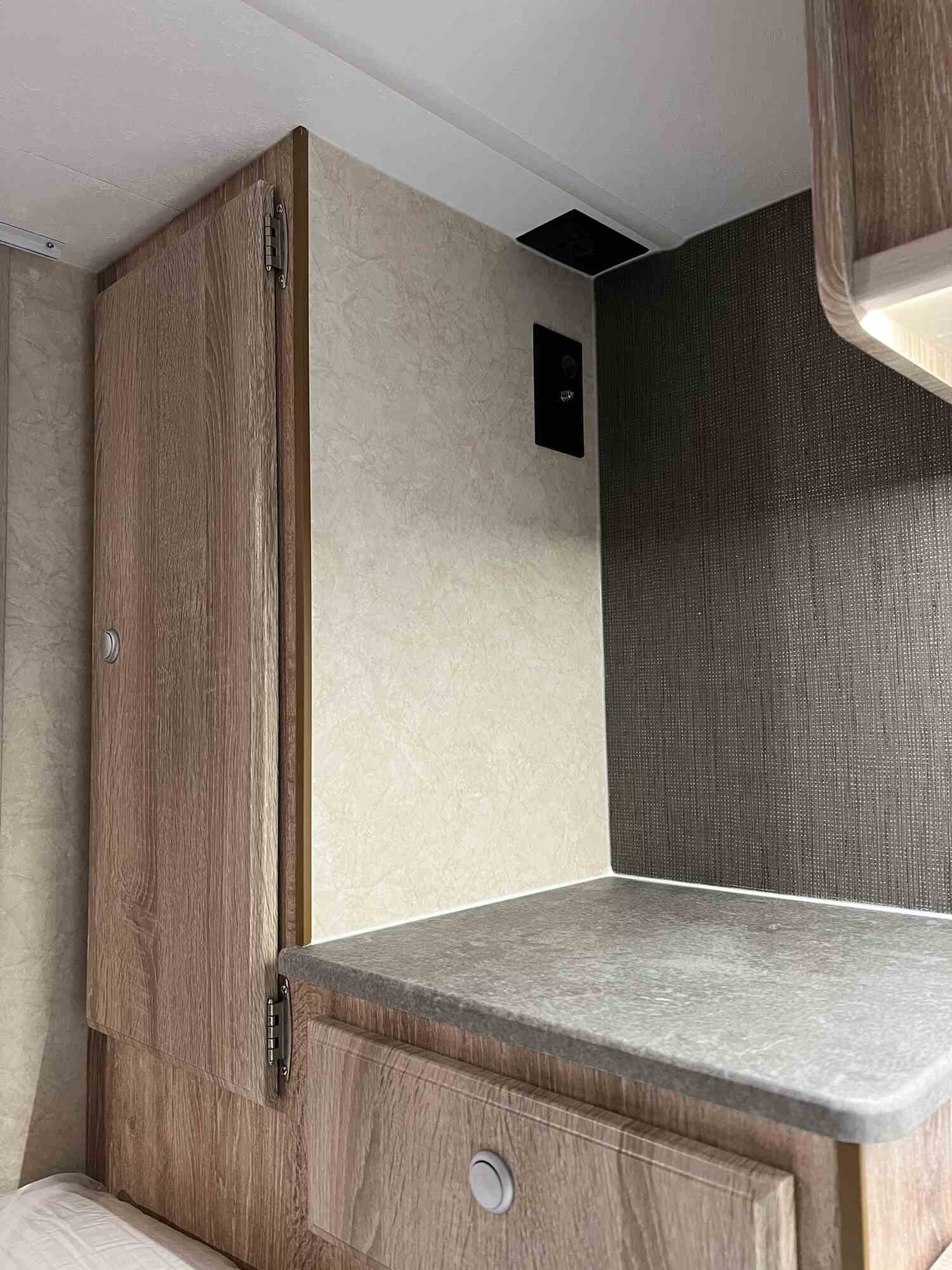 23. Fold down bunk/cabinet above dinette with 2 doors and restraint net (Over dinette) (38 lbs): $435.00
